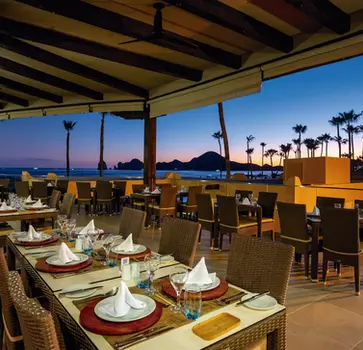 Across its expansive property, guests can enjoy everything from water park thrills to themed dining nights, fitness classes, live performances, and late-night entertainment. With six restaurants, multiple bars, and an impressive collection of swim-up bars, the resort always feels dynamic and social—perfect for families, groups, and couples seeking a festive and energetic Cabo experience. The 10 outdoor pools, children’s splash areas, and beachfront loungers create an effortless “resort within a resort” vibe, while the Renova Spa invites guests to unwind with massages, facials, and hydrotherapy circuits.